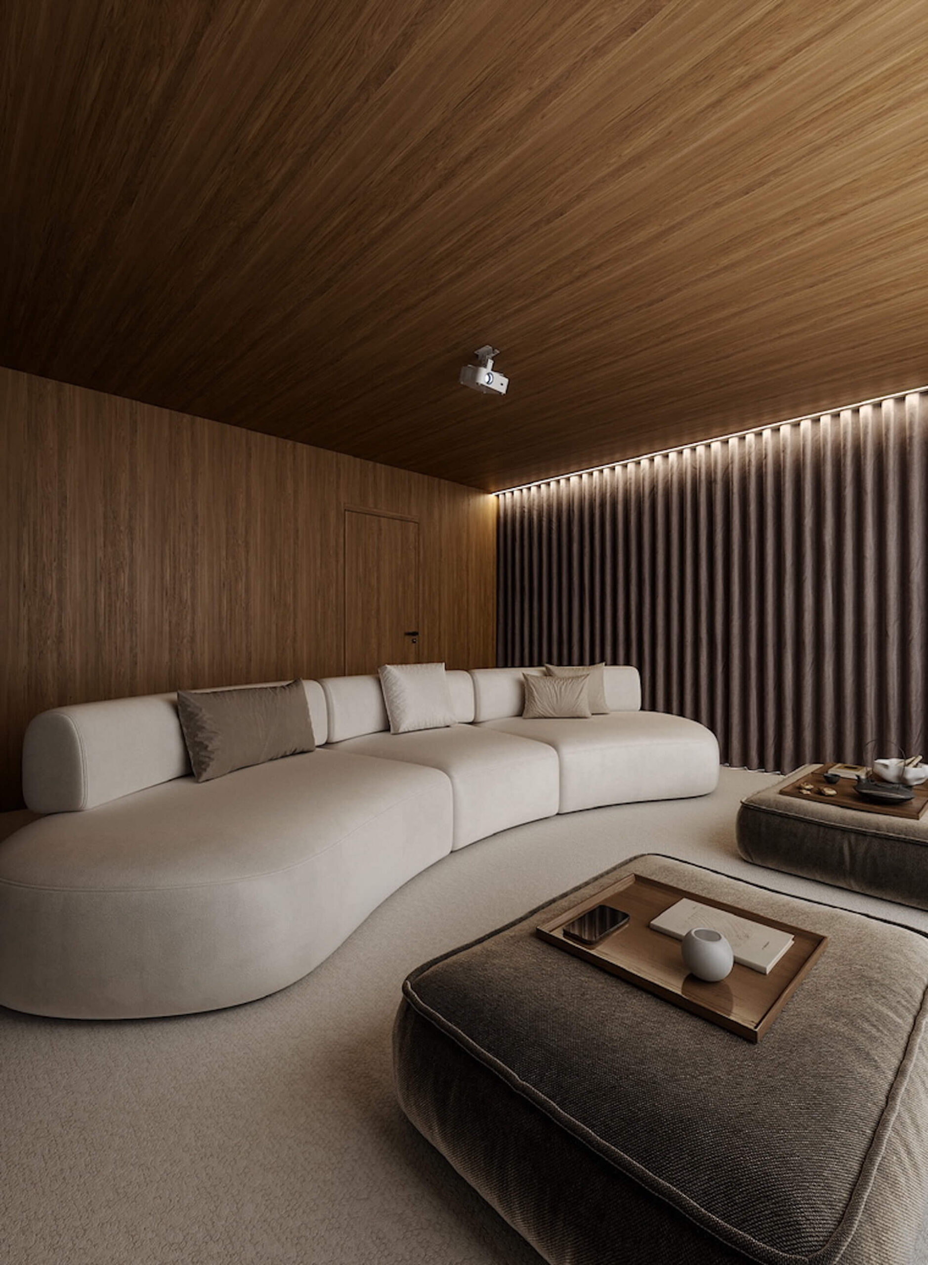 Alt fra bokkhyller til hemmelige dører stedbygges for å gli sømløst inn i boligens interiør. Alt for å skape de gode opplevelsene.